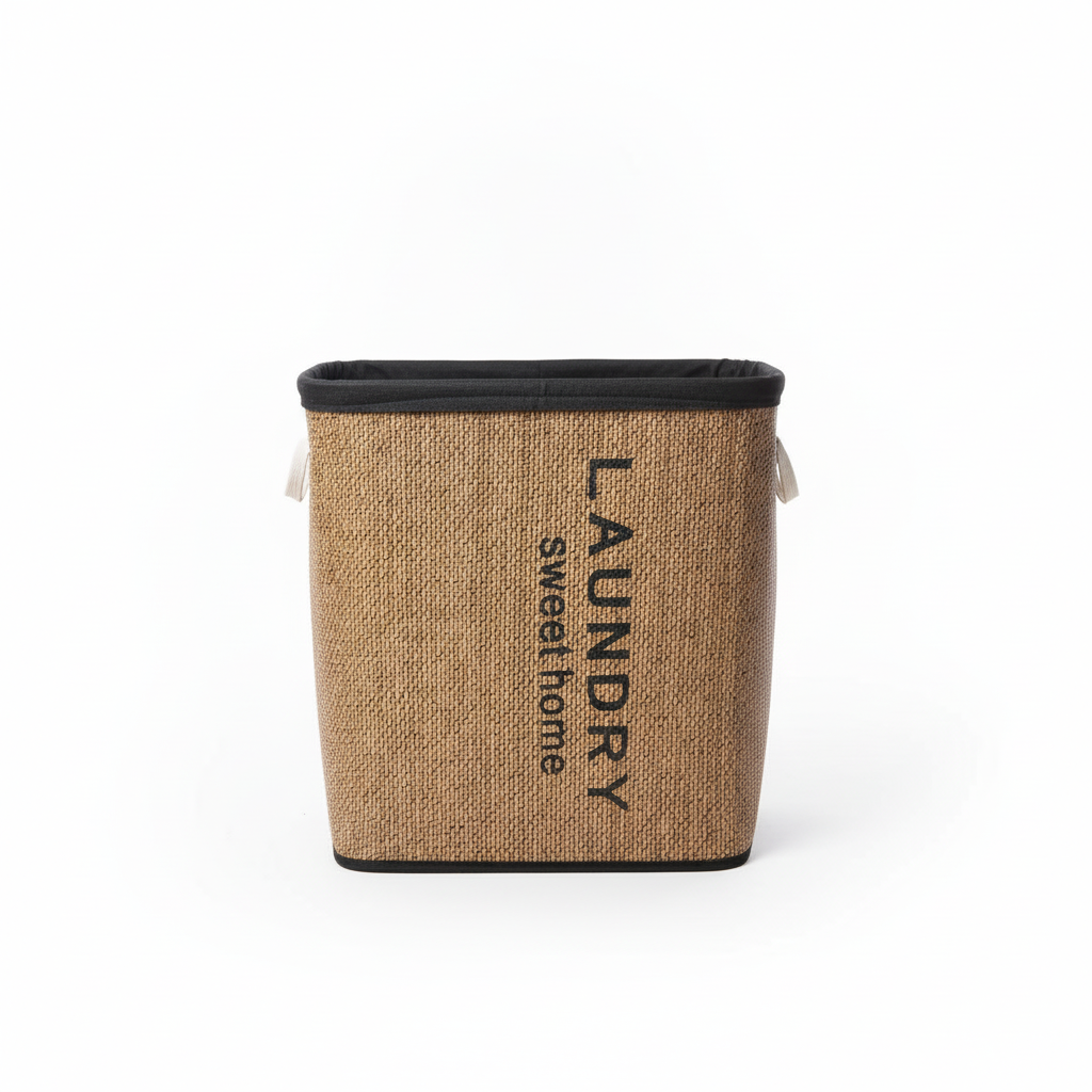 Kuti organizative e madhe për rroba me dizajn kërcelli dhe mbishkrimin "LAUNDRY sweet home" për ruajtje praktike në shtëpi. Kuti që qëndron në këmbë, e përshtatshme për organizimin e rrobave ose sendeve të ndryshme.