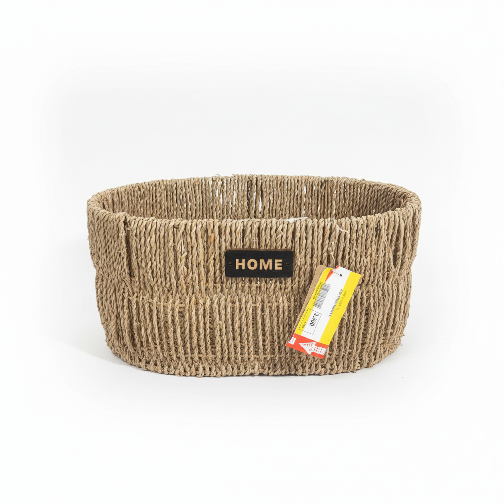 Kjo kuti organizative e madhe prej fibrash natyrore me mbishkrimin dekorativ “HOME” është zgjidhje praktike dhe estetike për sistemimin e sendeve në çdo ambient të shtëpisë.