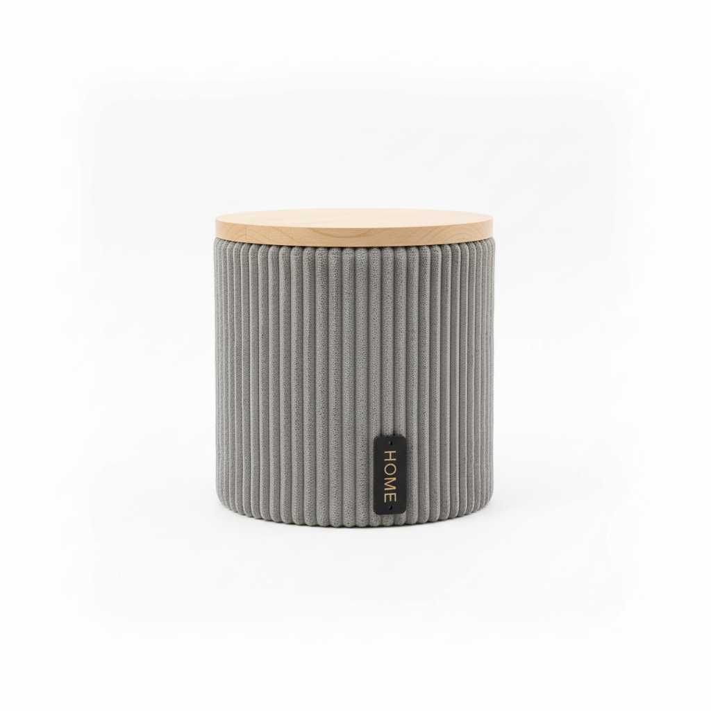 Kjo kuti organizuese me madhësi mesatare sjell rend dhe stil në çdo hapësirë, falë dizajnit cilindrik me pëlhurë gri me vija dhe detajin dekorativ “HOME”. E përshtatshme si aksesor praktik dhe dekorativ në shtëpi.