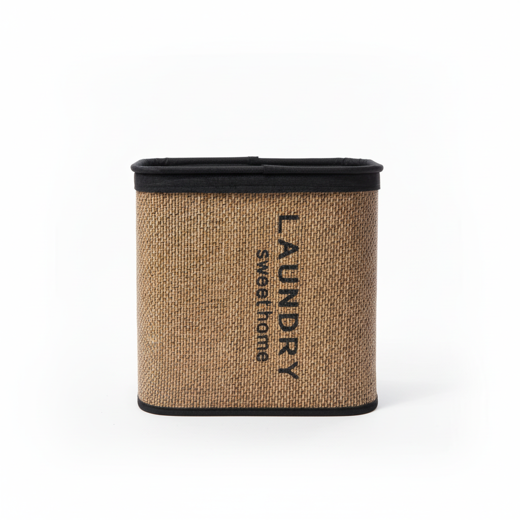 Kjo kuti organizative e vogël për rroba kombinon stilin natyral me funksionalitetin për organizimin e lavanderisë ose hapësirave të tjera të shtëpisë. Dizajni i thjeshtë e bën të lehtë integrimin në çdo ambient.