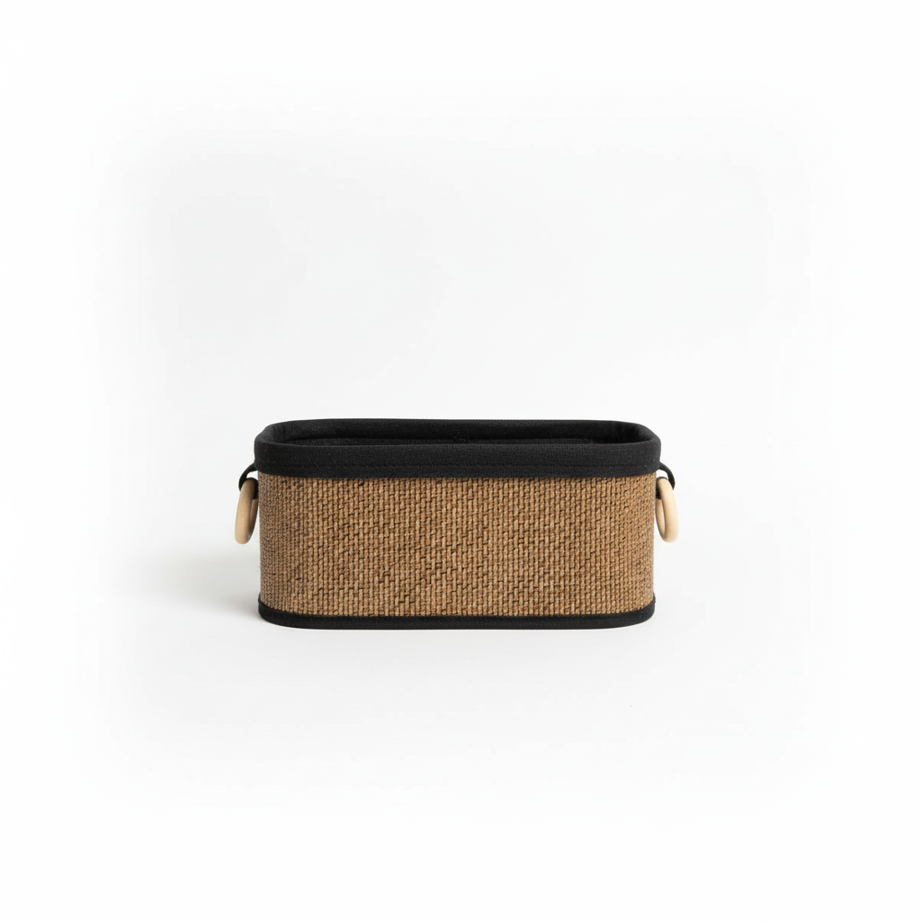 Kjo kuti organizative e vogël ndihmon në renditjen elegante të sendeve tuaja në shtëpi. Dizajni drejtkëndor me pamje ratani kombinohet me skaje të errëta për një pamje moderne.