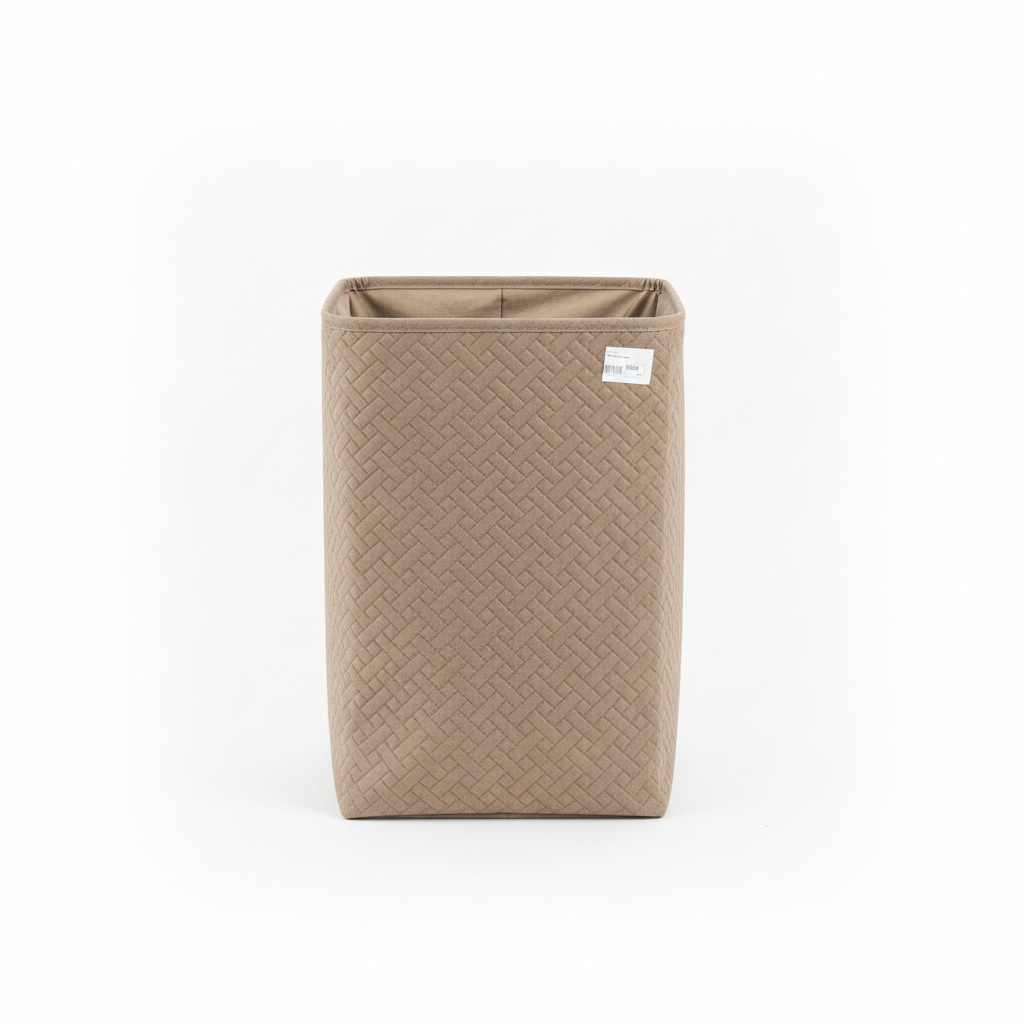 Kjo kuti e gjatë organizative me ngjyrë bezhë ofron zgjidhje elegante për ruajtjen e sendeve në shtëpi. Dizajni me material të butë dhe teksturë të qepur e bën praktike dhe dekorative njëkohësisht.