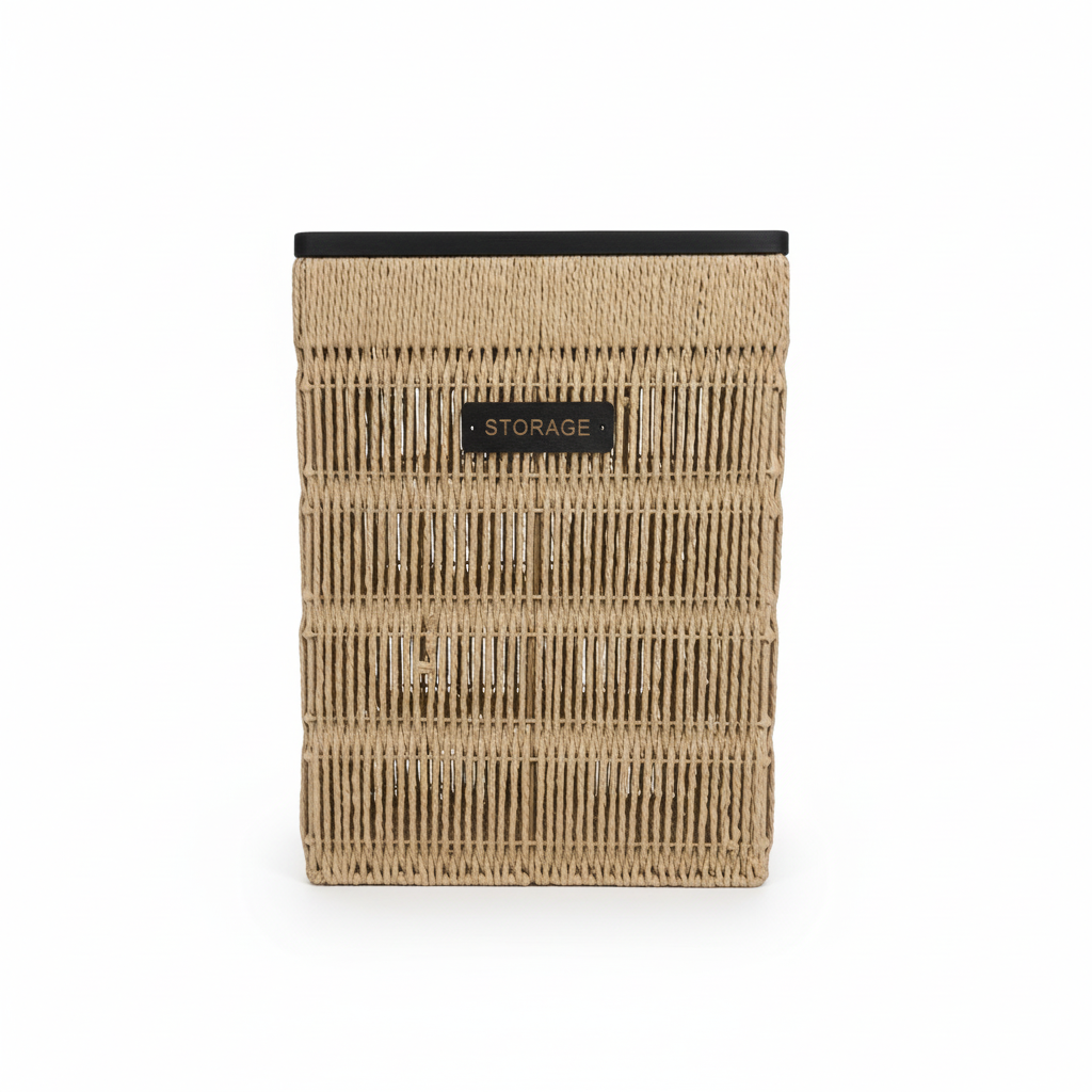 Kjo shportë organizuese XL me stil litar/ratan ofron hapësirë të bollshme dhe pamje natyrale neutrale për ruajtjen e sendeve në shtëpi. Dizajni i saj i gjatë drejtkëndor dhe pjesa e sipërme e hapur e bëjnë ideale për organizim të përditshëm.