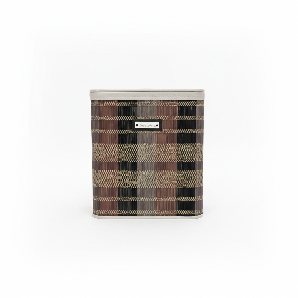 Kjo kuti organizative XL me pamje të thurur dhe model vija në nuanca kafe, të zeza dhe gri është zgjidhje funksionale dhe dekorative për organizimin e shtëpisë. Pllaka dekorative “Sweet Home” në pjesën e përparme i jep një prekje të ngrohtë ambientit tuaj.