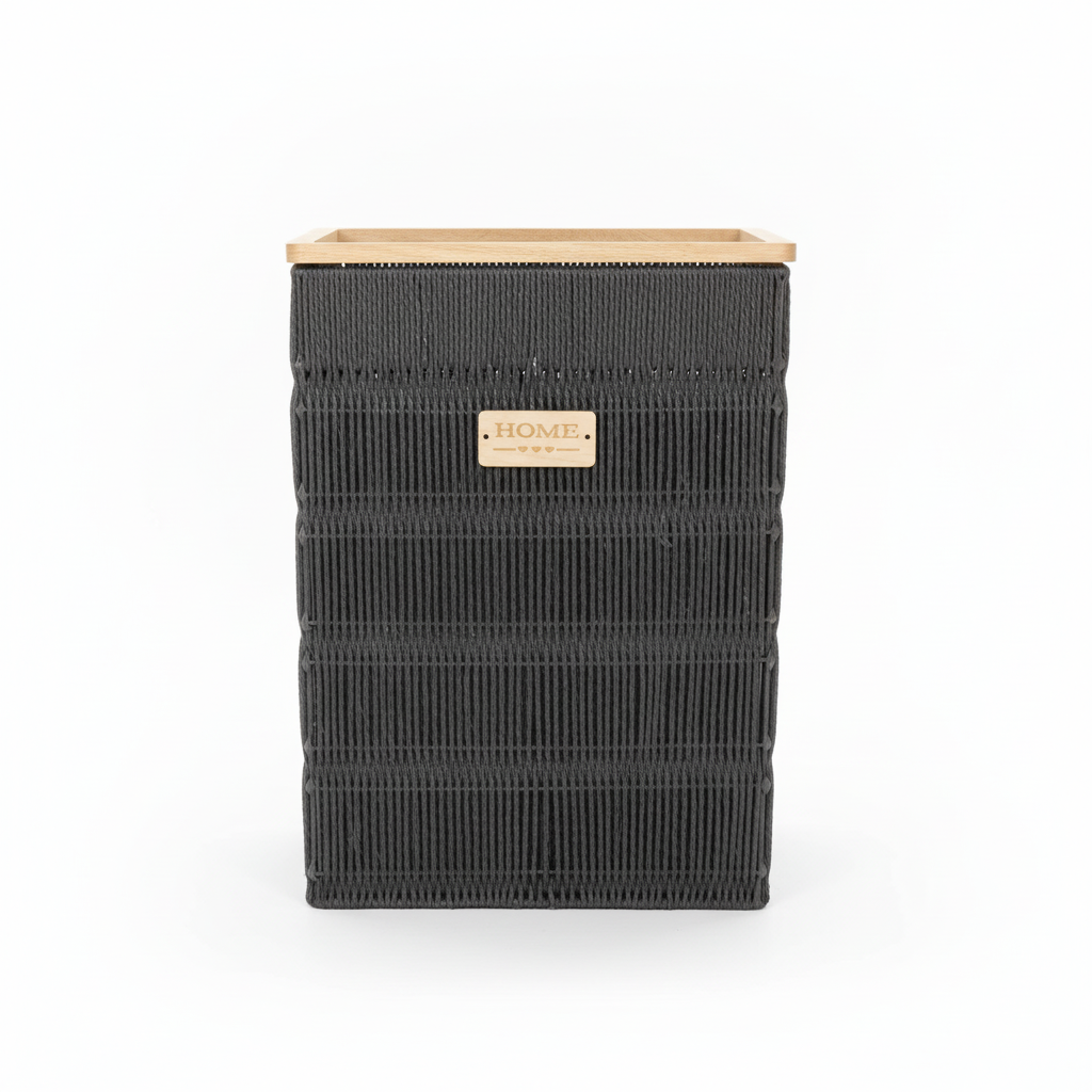 Kjo kuti organizative XXL gri me teksturë të thurur dhe detaje druri është zgjidhje praktike dhe dekorative për ruajtjen e sendeve në shtëpi. Dizajni i saj drejtkëndor për t’u vendosur në dysheme përshtatet lehtësisht në çdo ambient.
