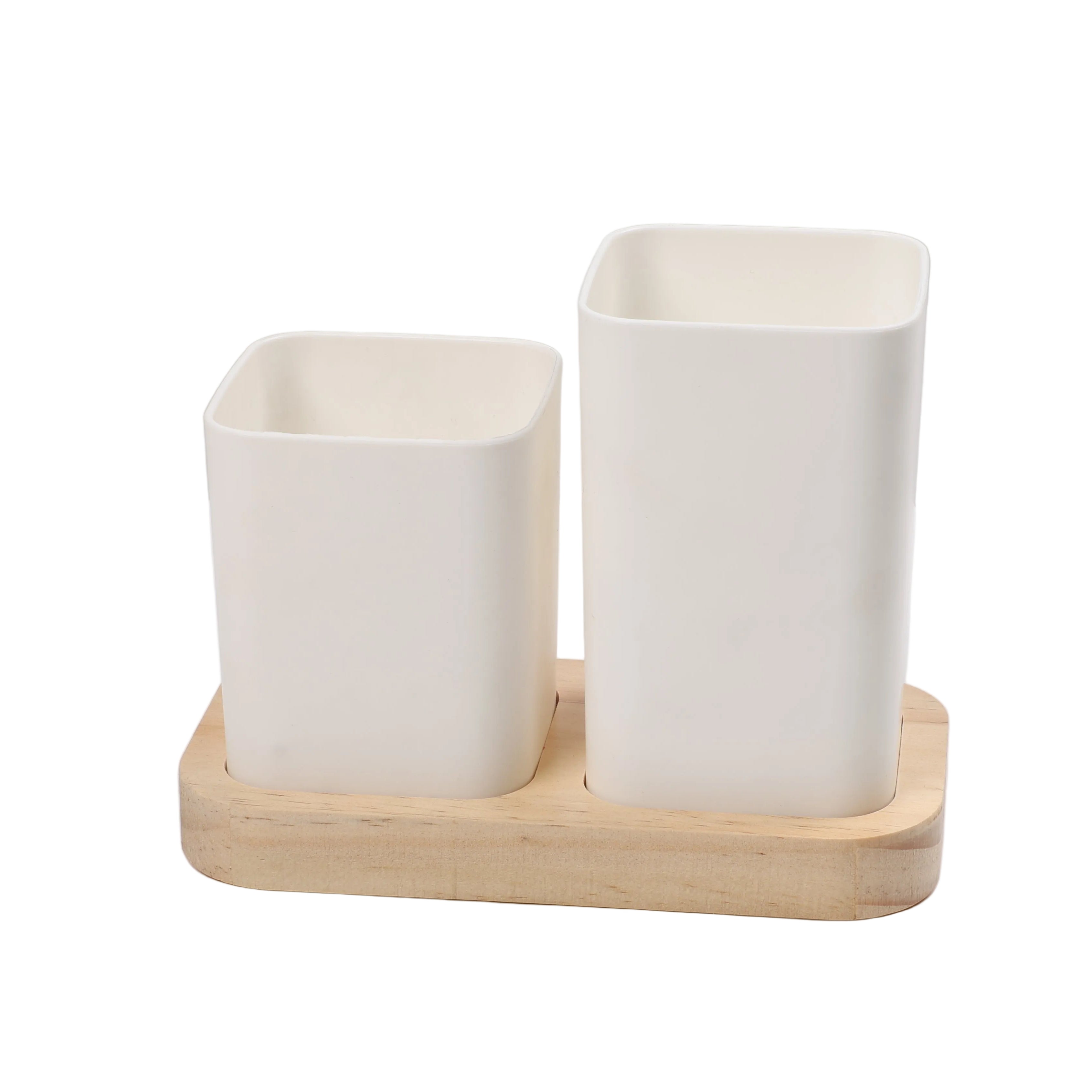 Ky organizues elegant me dy ndarje është ideal për të mbajtur të rregulluara aksesorët e përditshëm. Me dizajn minimalist dhe kombinim të materialit të bardhë me bazë druri natyral, ai përshtatet lehtësisht në çdo ambient si banjo, kuzhinë apo tavolinë pune.