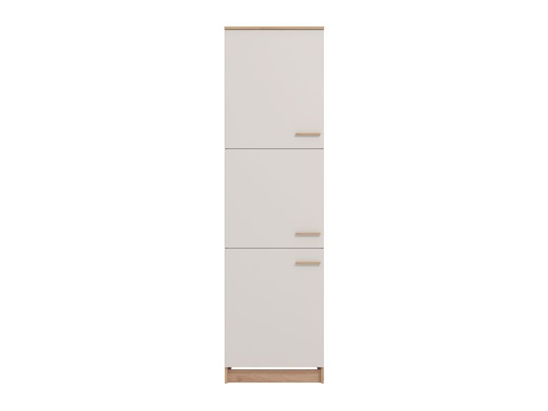 E veshur me të njëjtin kombinim elegant të Kashmir Mat (bezhë e ngrohtë) dhe Lis Artisan, ajo integrohet natyrshëm me pjesën tjetër të kuzhinës. Me tre dyer të ndara vertikalisht, ky dollap shërben si një dispencë e përsosur për të mbajtur të organizuara ushqimet, konservat, apo edhe pajisjet e pastrimit.
