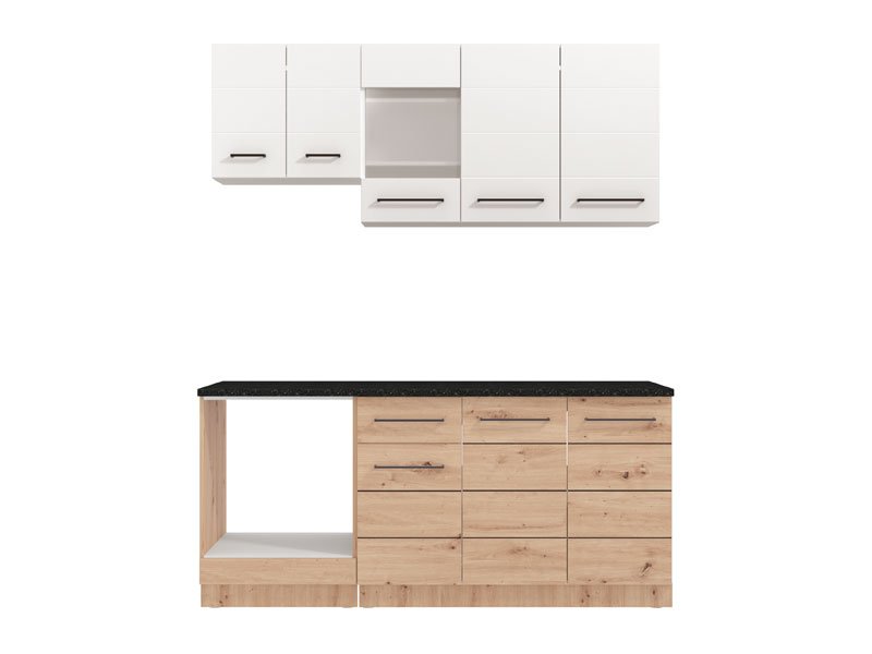Kombinoni funksionalitetin modern me ngrohtësinë e natyrës me kuzhinën Havana Artisan. Ky model është zgjidhja perfekte për ata që duan një kuzhinë kompakte (1.8m), por që duket luksoze dhe e kompletuar.