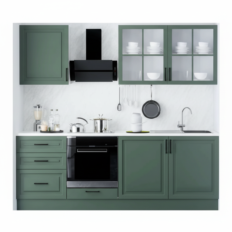 E realizuar me MDF cilësor, kjo kuzhinë ofron një finiturë të përsosur dhe uniforme. Ngjyra e saj e gjelbër (Zeleni) është e zgjedhur me kujdes për të qenë relaksuese për syrin, por mjaftueshëm e fortë për t'i dhënë karakter gjithë shtëpisë.