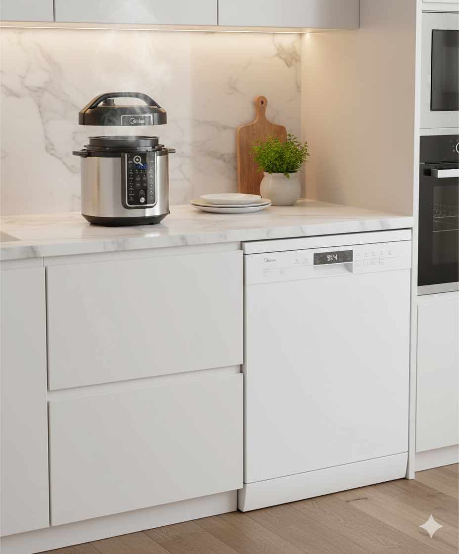 Lavastovilje MIDEA MFD60S120W-HR Qendrim I Lire 60cm + Multicooker Midea MY-CS6037WPB 6L 1000W Elektronik 15 Programe