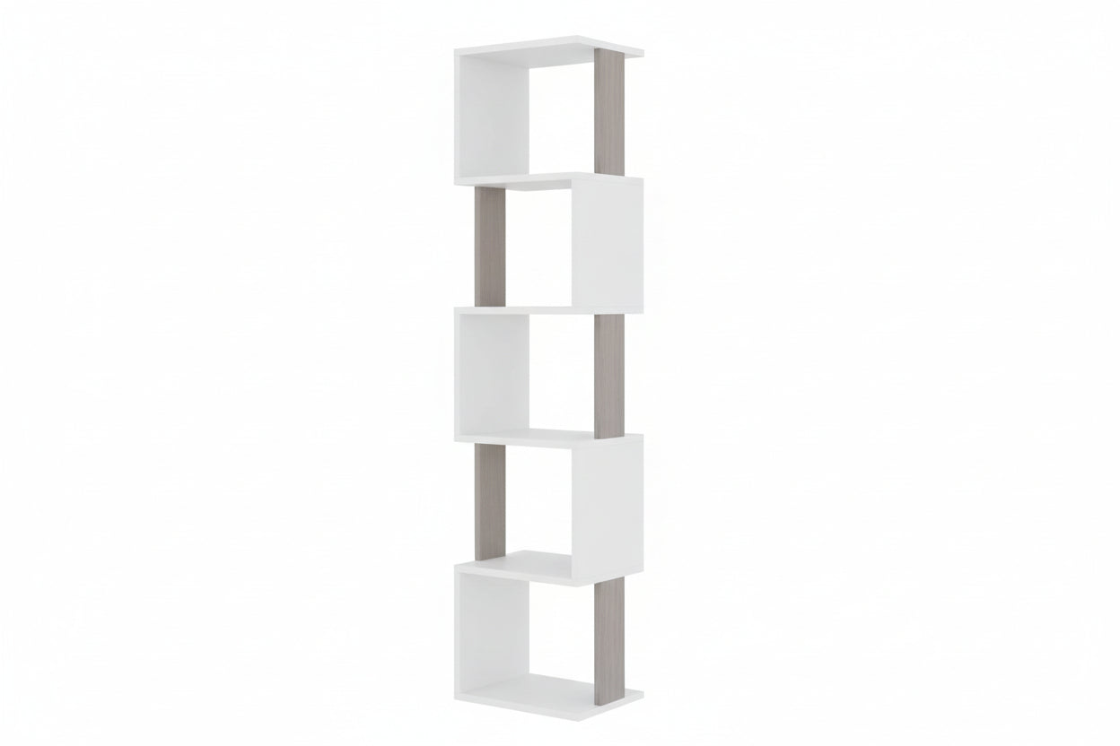 Ky raft librash vertikal me forma gjeometrike është një zgjidhje praktike dhe dekorative për çdo ambient. Struktura e tij e ngushtë dhe e lartë e bën ideal për kënde të vogla, ndërsa hapësirat e hapura ofrojnë vend të mjaftueshëm për libra, suvenire apo objekte dekorative.