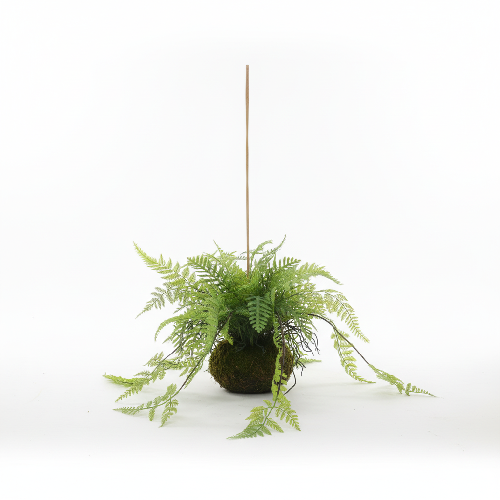 Bima dekorative artificiale me gjethe fieri sjell gjelbërim të dendur dhe pamje natyrale në çdo hapësirë të brendshme, falë dizajnit të saj varës me mbështetëse qendrore.