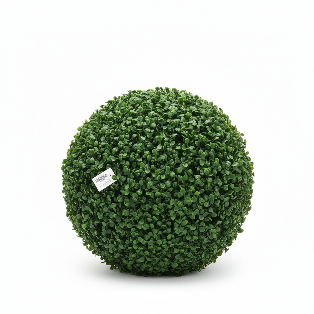 - Top sferik dekorativ me gjethe të vogla të dendura në ngjyrë të gjelbër.