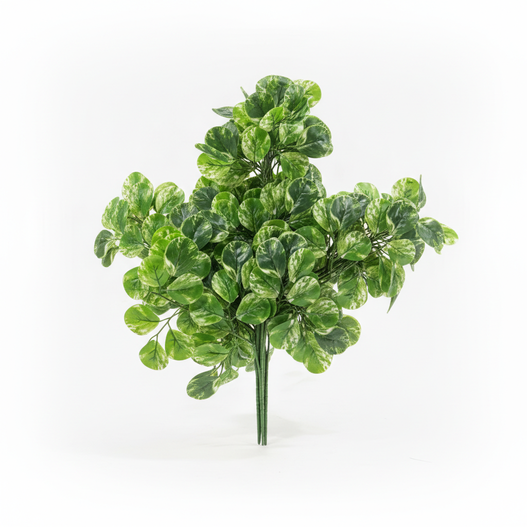 Tufa me gjethe artificiale të rrumbullakëta sjell gjelbërim dhe pamje natyrale në çdo hapësirë të brendshme, pa nevojën për mirëmbajtje. Modeli jeshil me të bardha krijon një efekt të gjallë dekorativ në shtëpi ose zyrë.