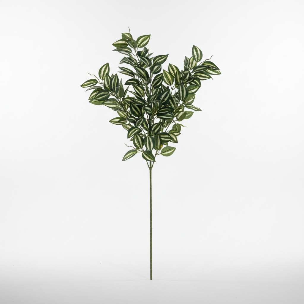 Degë artificiale me gjethe jeshile dhe të bardha dyngjyrëshe, ideale për dekor të brendshëm dhe aranxhime moderne pa mirëmbajtje. Me shumë kërcenj në një degë të vetme, krijon volum dhe pamje natyrale në çdo kënd të shtëpisë ose zyrës.