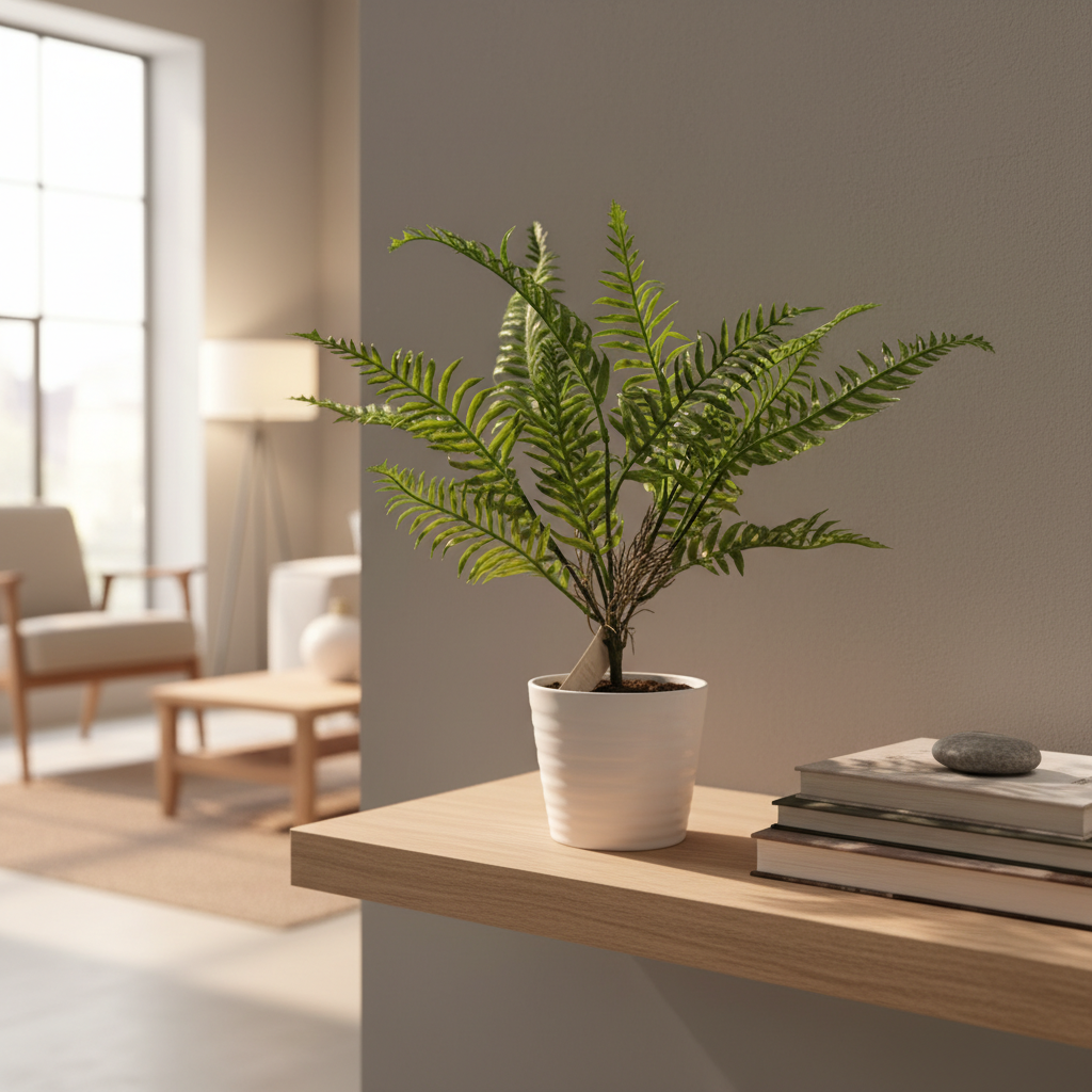 Degë fieri artificiale me gjethe jeshile plastike, ideale për t’i sjellë gjallëri çdo ambienti të brendshëm pa mirëmbajtje. Shumë praktike për dekorim tavolinash, vazo ose kompozime florale.
