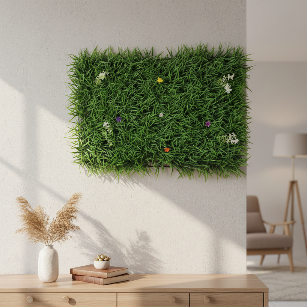 - Panel bari artificial drejtkëndor me pamje të gjelbër të dendur.