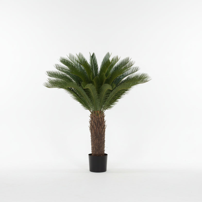 Kjo palmë dekorative artificiale me trung natyral dhe gjethe të dendura është një element ideal për të shtuar gjelbërim dhe stil në çdo ambient. Dizajni i saj realist krijon pamjen e një bime të vërtetë, duke sjellë një ndjesi tropikale dhe elegante pa pasur nevojë për mirëmbajtje.