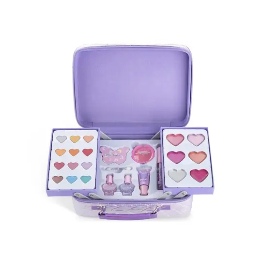 Këllëf kozmetike super e lezetshme dhe e bukur në dy shtresa, me 12 rimel, 8 shkëlqim buzësh, manikyr, aplikues, skedar thonjsh etj.