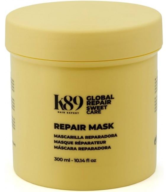 Maskë restauruese për flokë të trajtuar kimikisht dhe të dëmtuar. Maska K89 Sweet Care Repair ushqen thellë, duke mbushur dhe rindërtuar fibrat e flokëve. Është projektuar për të riparuar dhe forcuar flokët e dëmtuar nga teprimet kimike ose përdorimi i tepërt i nxehtësisë.