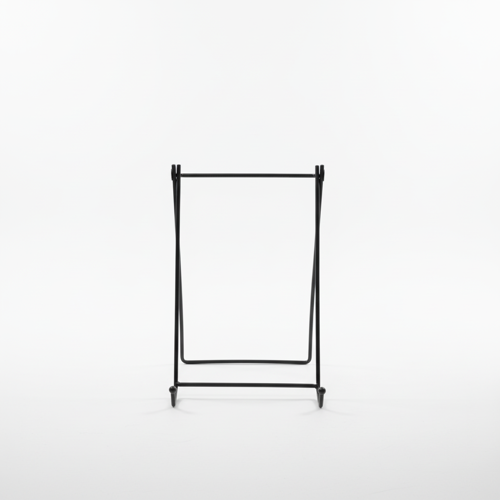 Stendë praktike metalike që mban qeset ose mbulesat e hapura për përdorim më të lehtë në kuzhinë. Konstrukti i thjeshtë me tel dhe përfundimi në ngjyrë të zezë e bëjnë të përshtatshme për çdo ambient.