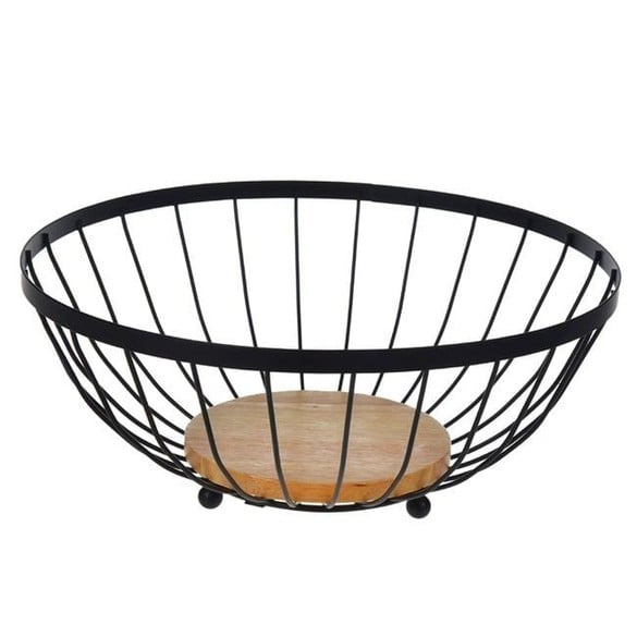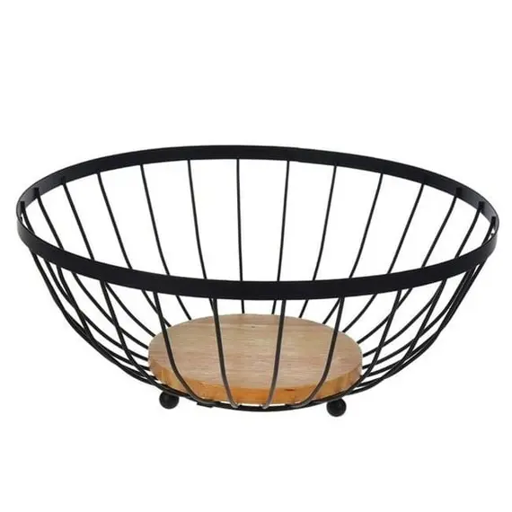Mbajtëse frutash metalike e zezë me bazë druri Ø28.5x12cm
