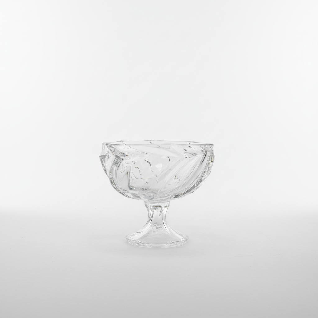 Mbajtësja e karameleve nga qelqi transparent me dizajn spiral dhe bazë elegante është zgjidhja ideale për servirjen e ëmbëlsirave në çdo tavolinë. Forma e hapur e kupës e bën të përshtatshme për përdorim të përditshëm ose për raste speciale.