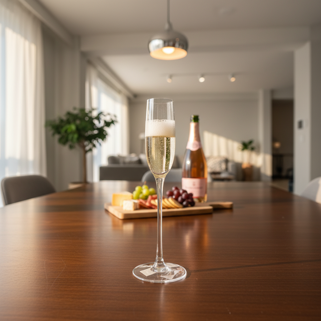Kjo gotë shampanje me këmbë të gjatë dhe dizajn flute ofron paraqitje elegante për servirjen e pijeve të gazuara. Qelqi i qartë nxjerr në pah ngjyrën dhe flluskat e shampanjës në çdo rast.