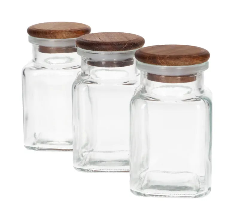 Të prodhuar nga qelq rezistent me kapak hermetik prej silikoni dhe dru acacia, kavanozët mbajnë përmbajtjen të freskët për më gjatë.