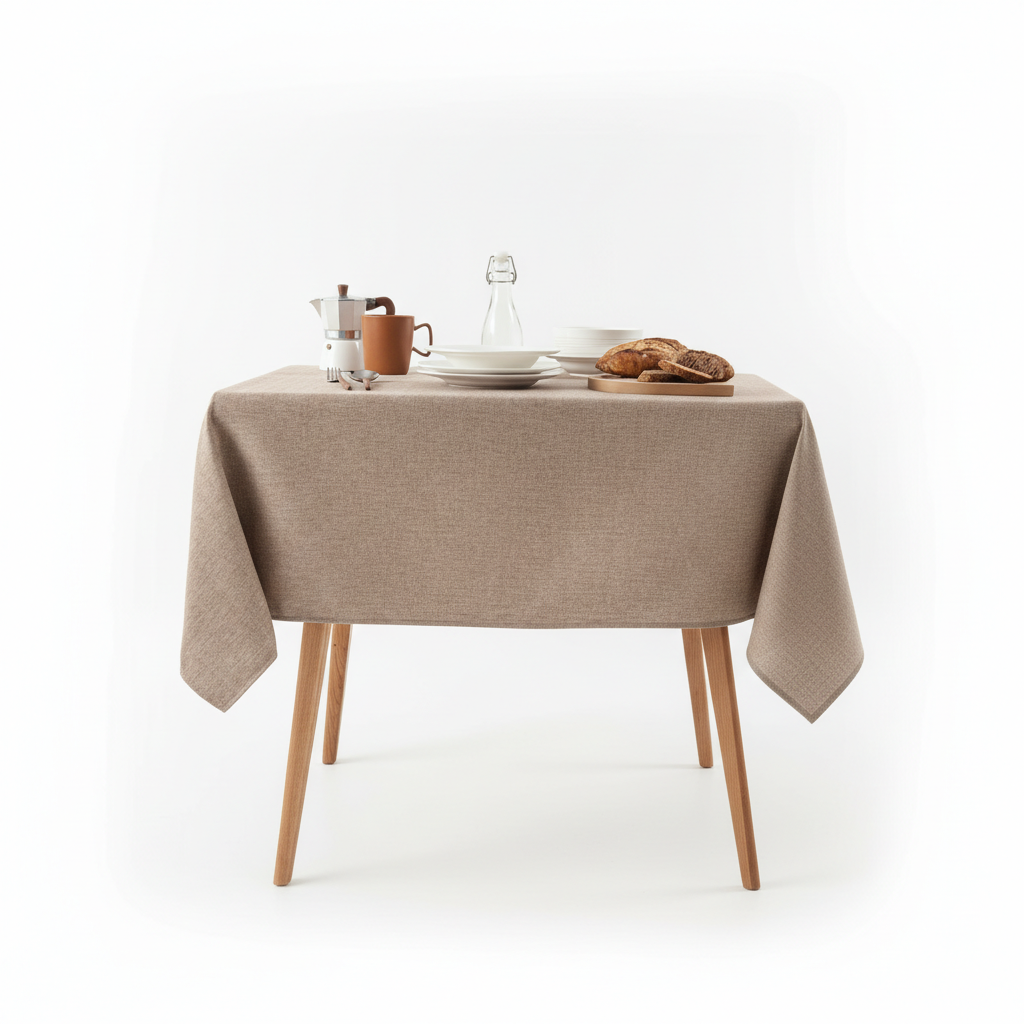 Kjo mbulim tavoline në ngjyrë kapuçino sjell një pamje të ngrohtë dhe moderne në tryezën tuaj, ideale si për përdorim të përditshëm ashtu edhe për raste të veçanta. Forma drejtkëndore dhe përmasat 132×178 cm e bëjnë të përshtatshme për shumicën e tavolinave standarde. Materiali tekstil siguron prekje të butë dhe rënie elegante, duke mbrojtur njëkohësisht sipërfaqen e tavolinës.
