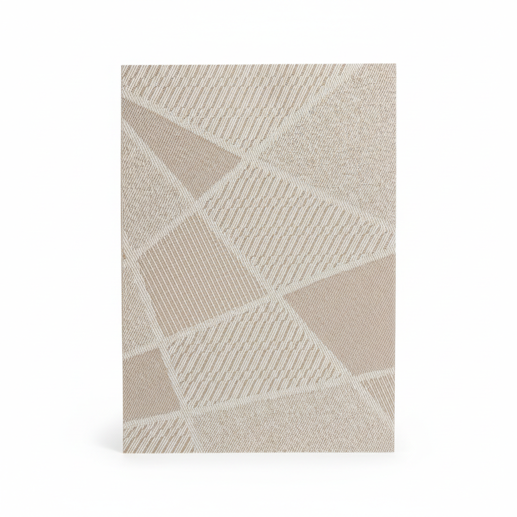 Napen drejtkëndor sjell një model gjeometrik patchwork në ngjyrë neutrale që kombinohet lehtësisht me enët dhe dekorin ekzistues. Materiali i endur sintetik krijon një sipërfaqe të hollë, fleksibël dhe praktike për përdorim të përditshëm. Struktura e saj ndihmon në mbrojtjen e tavolinës nga nxehtësia dhe njollat, duke bërë të duket gjithmonë e rregullt. Pastrimi është i thjeshtë, ndaj është i përsosur si për përdorim familjar ashtu edhe për raste të veçanta.