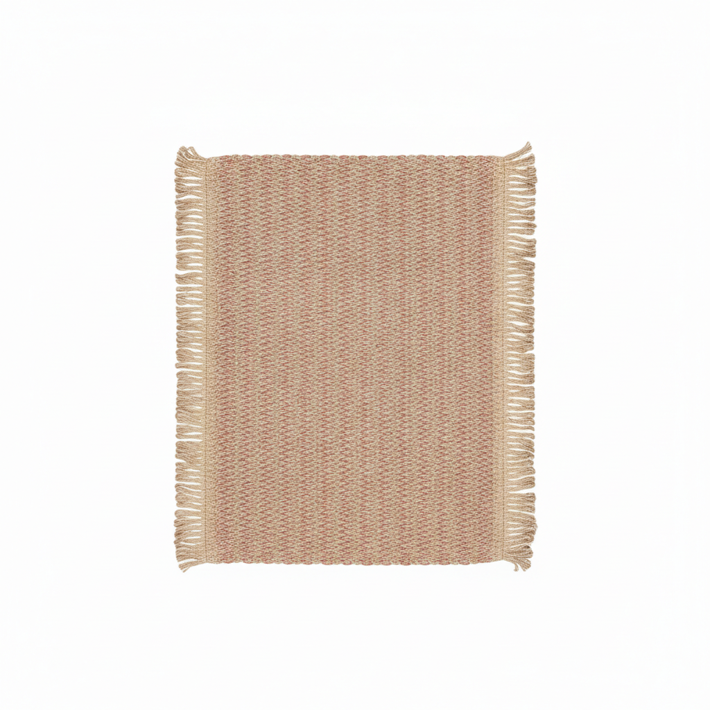 Kjo napë e endur nga fibra natyrale sjell një pamje të ngrohtë falë kombinimit të nuancave bezhë dhe rozë, duke i dhënë tryezës tuaj stil minimalist dhe modern. Forma e saj drejtkëndore dhe struktura e trashë e bëjnë të përshtatshme si nderesë tavoline ose si një tapet i vogël dekorativ në çdo sipërfaqe.
