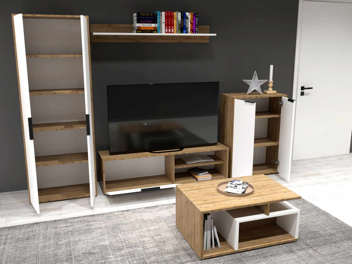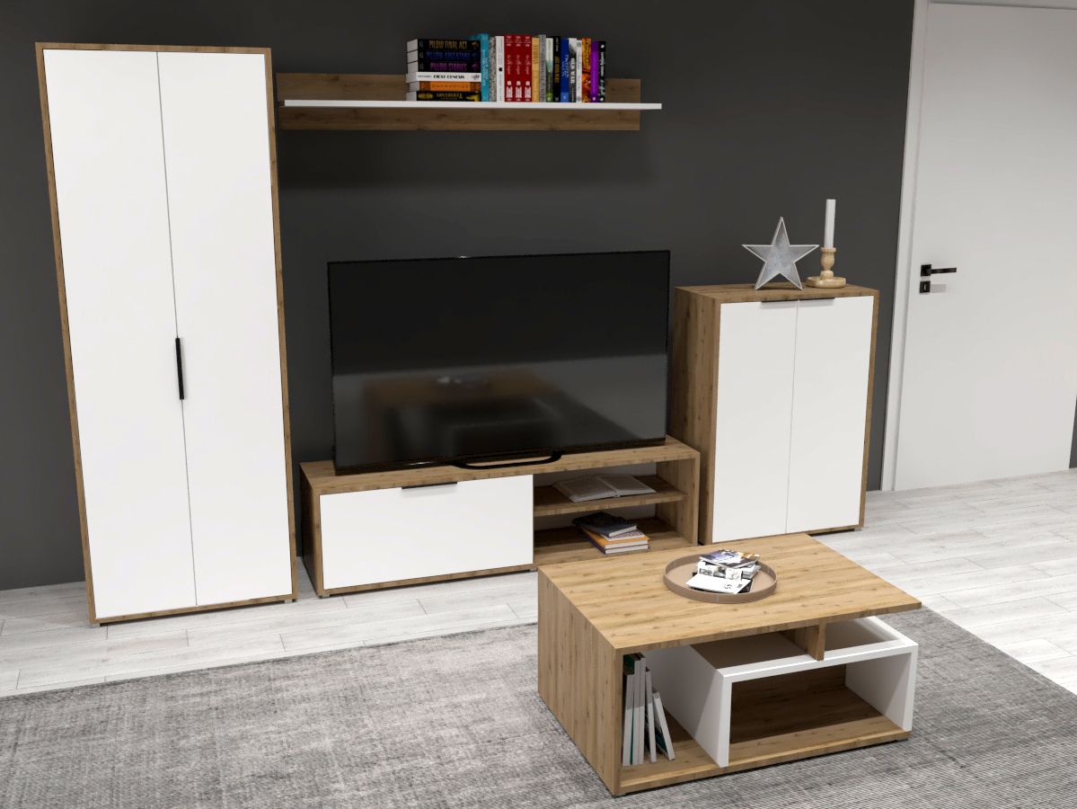 CLAUDIA është një zgjedhje e shkëlqyer për ata që duan një pamje të organizuar dhe minimaliste në dhomën e tyre të ndenjes, me hapësirë të bollshme magazinimi dhe funksionalitet bazë.