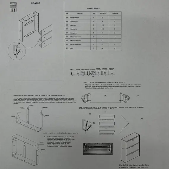 Shënim: Produkti vjen i çmontuar në paketimin e fabrikës me një diagram të detajuar të montimit.