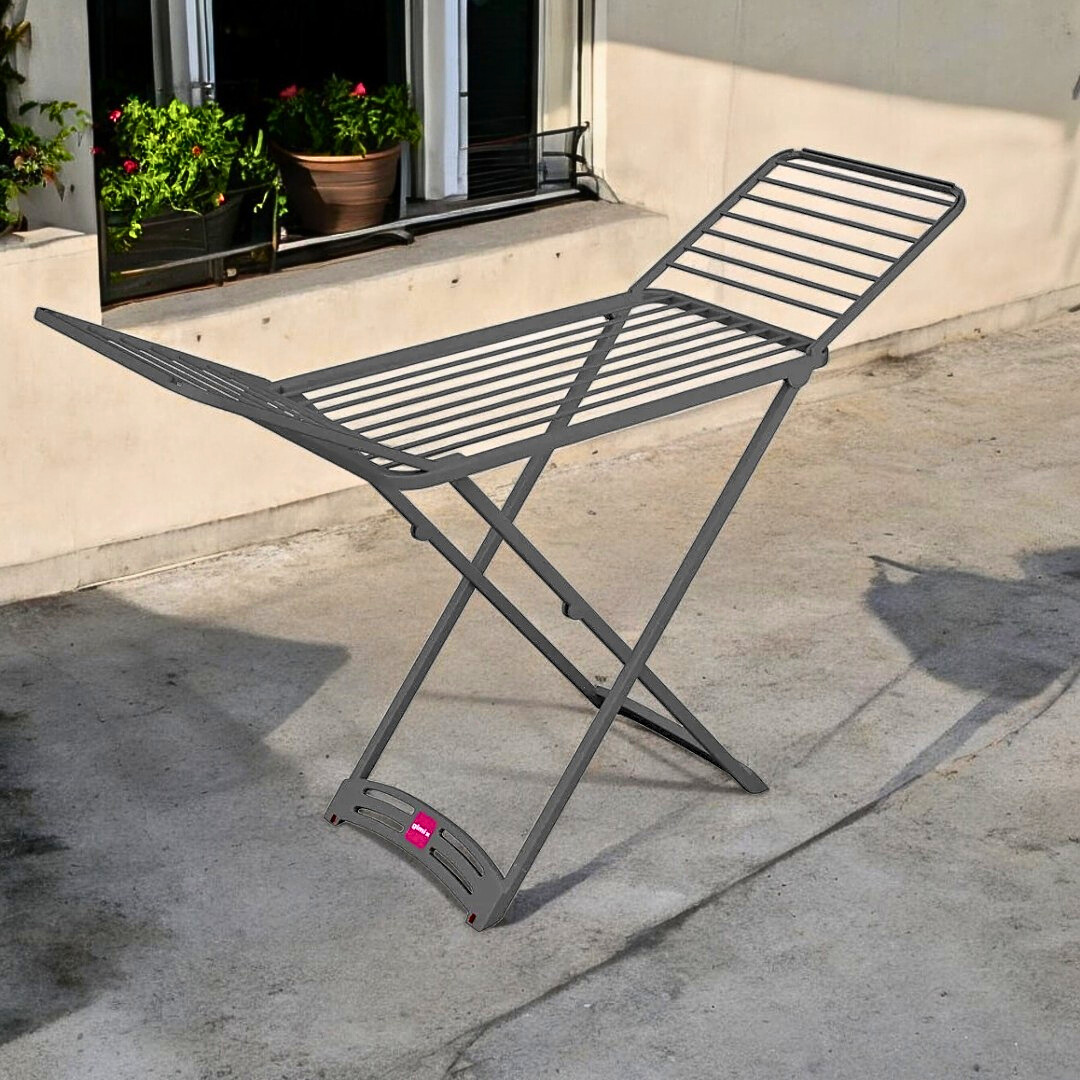 Së fundmi mund të jeni lodhur duke varur rrobat e lagura nëpër litarët e ballkoneve. Keni nevojë gjithashtu për më shumë hapësirë për të tharë rrobat delikate të lara me dorë, ndaj një nderëse e fortë dhe efikase për tharjen e rrobave mund të bëjë ndryshimin. Nderese Rrobash Grafite është ideale për nderjen e rrobave në ambjentet e jashtme, por përdoret gjithashtu edhe brenda shtëpisë. Prodhuar nga Gimi, Nderese Rrobash Grafite ka rrota që e bëjnë të lehtë lëvizjen dhe një sistem për të parandaluar mbylljen aksidentale, me buton.