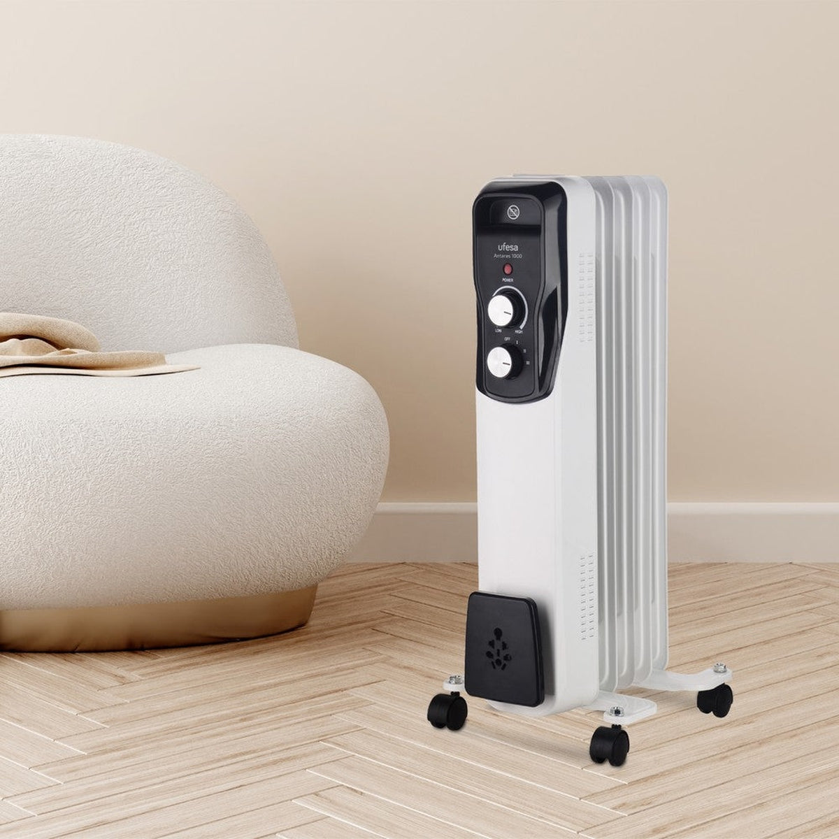 Ufesa ANTARES 1000 është një ngrohëse vajore kompakte dhe efikase me fuqi 1000W, e cila ofron ngrohje të qetë dhe të vazhdueshme. Pajisja vjen me 5 elementë ngrohës (fin) me dimension 12 × 57 cm, duke shpërndarë nxehtësinë në mënyrë të barabartë në hapësirë.