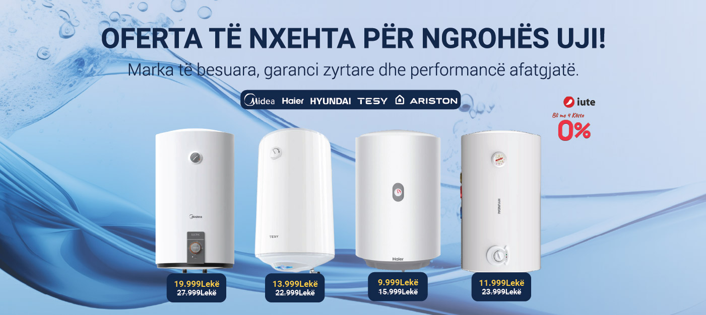 Përgatitu për komoditet maksimal me ngrohës uji cilësor nga marka të besuara si Midea, Haier, Tesy, Hyundai dhe Ariston. Zgjidh modele me efikasitet të lartë energjie, performancë të qëndrueshme dhe garanci zyrtare. Siguro ujë të ngrohtë çdo ditë me çmime promocionale dhe blerje të sigurt online.