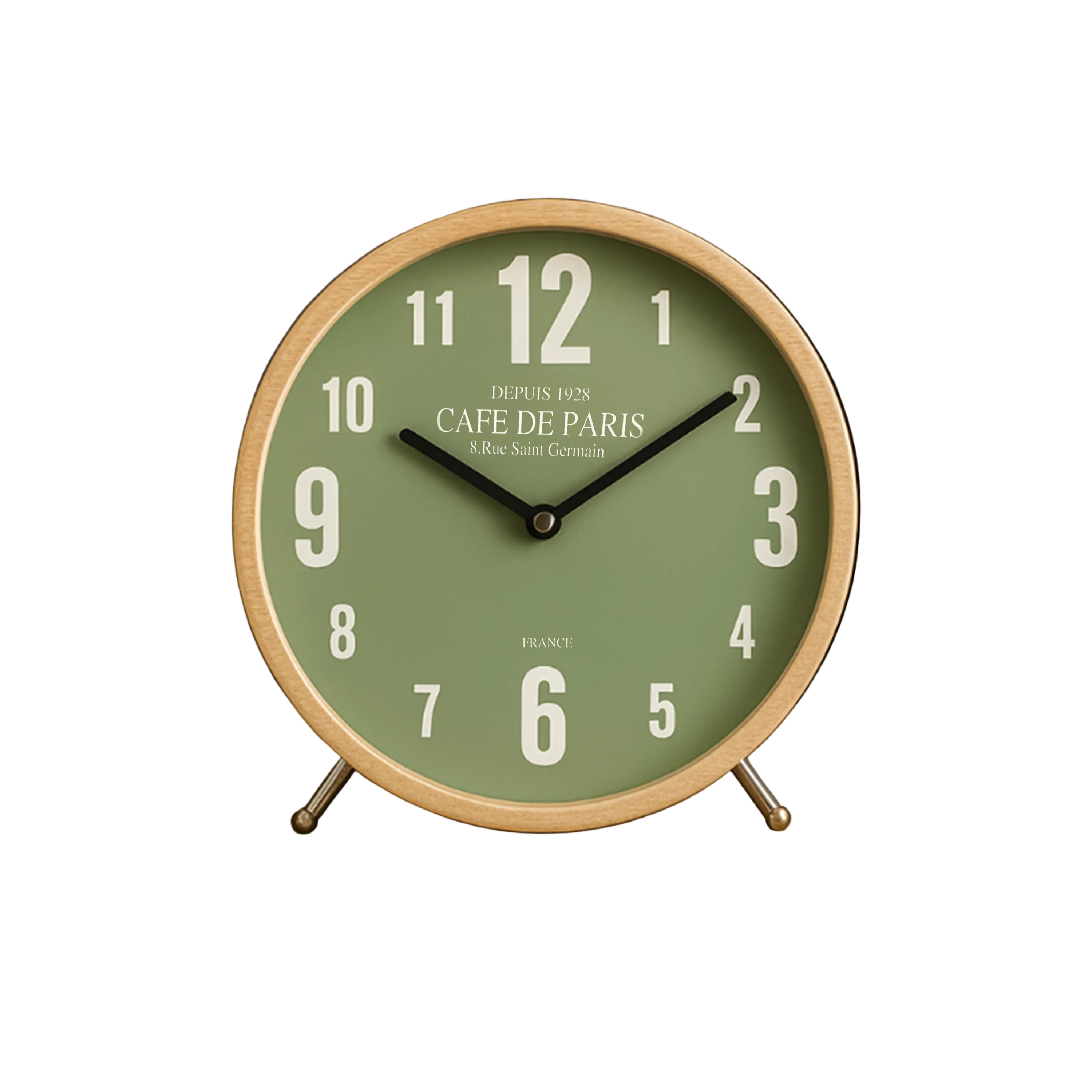 Orë tavoline me dizajn minimalist dhe modern, e përshtatshme për komodinë, zyrë apo çdo ambient të brendshëm. Korniza me efekt druri i jep një ndjesi natyrale dhe të ngrohtë, ndërsa numrat e mëdhenj sigurojnë lexim të lehtë të orës.