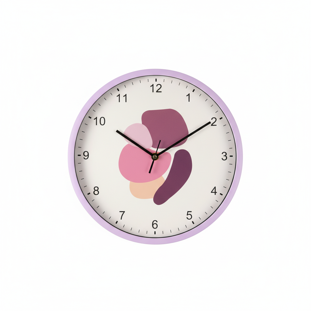 Kjo orë muri rrethore sjell një prekje minimaliste dhe artistike në çdo ambient falë kornizës së saj vjollcë/lejlake dhe fushës së bardhë me dizajn abstrakt shumëngjyrësh. Numrat arabë të zinj dhe shenjat minutore rreth skajit sigurojnë lexim të qartë të orës, ndërsa tre akrepat (orë, minuta, sekonda) garantojnë matje precize të kohës. Ideale për dhomë ndenjeje, zyrë apo dhomë gjumi, ajo funksionon si aksesuar dekorativ dhe si mjet praktik i përditshëm. Dizajni i saj neutral kombinohet lehtësisht me stile të ndryshme mobilimi.