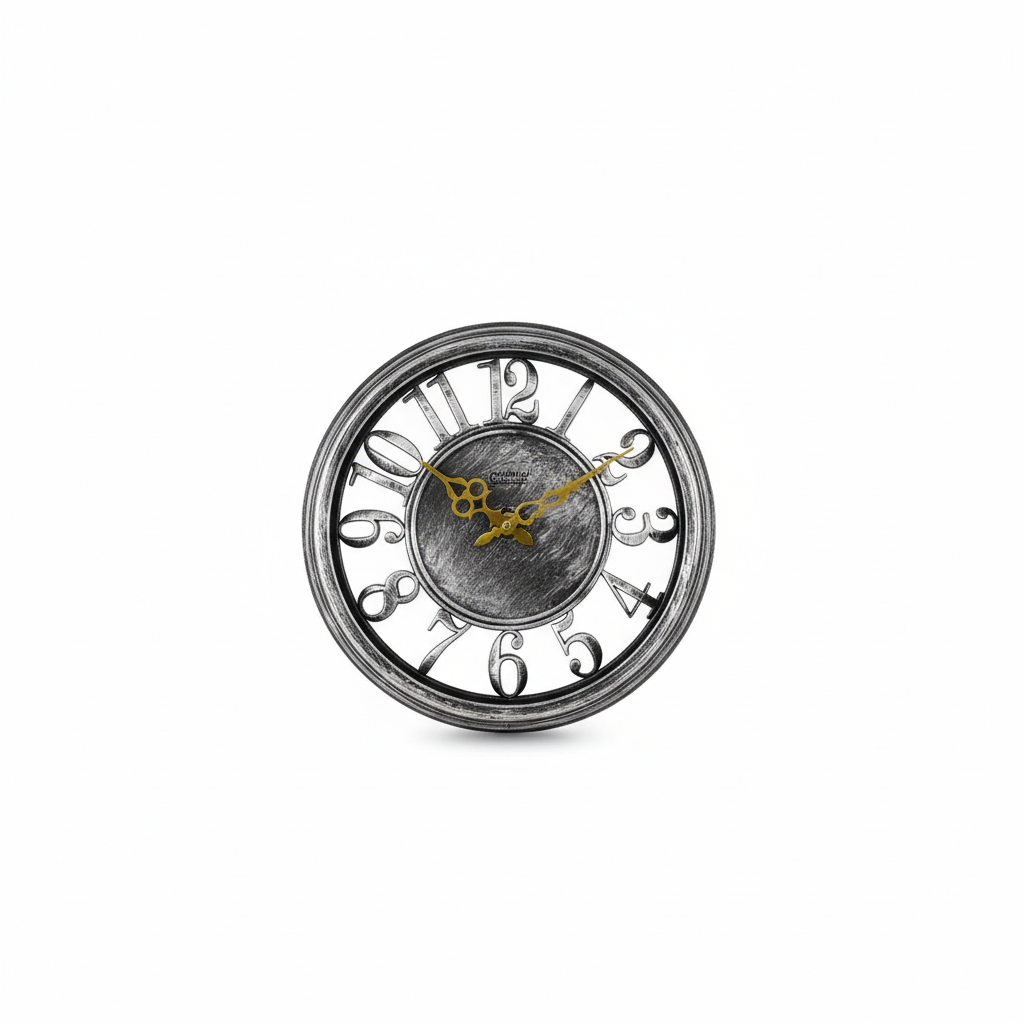 - Dizajn rrethor analog me pamje vintage/argjend antik për dekor elegant muri.