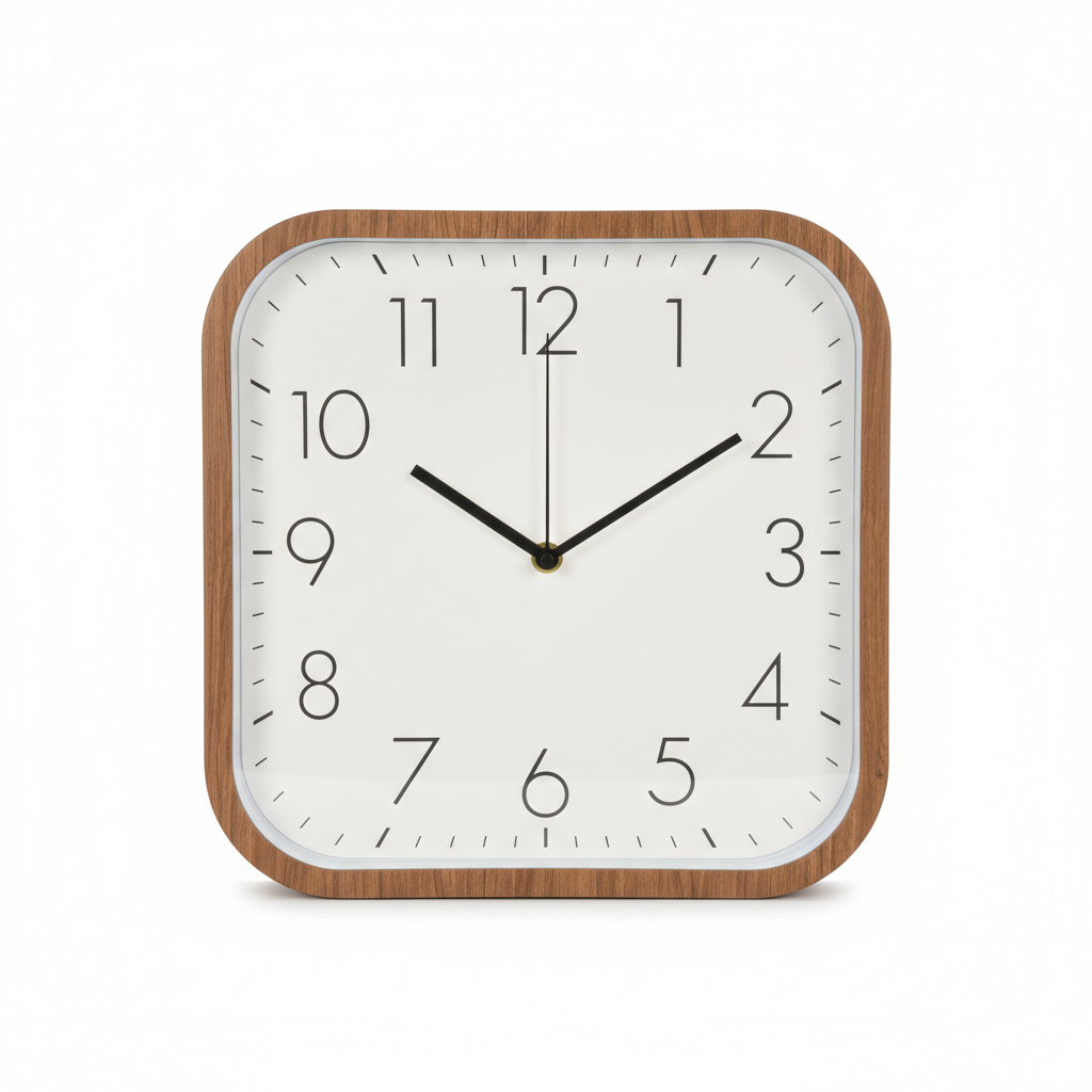 Ore muri analoge me dizajn minimalist, ideale për çdo ambient shtëpie ose zyre. Korniza me pamje dru natyral kombinohet me fushën e bardhë për një stil modern dhe të pastër. Shënuesit e orëve dhe akrepat në ngjyrë të zezë ofrojnë lexueshmëri të lartë nga çdo kënd. E përshtatshme për vendosje në mur për të kursyer hapësirë.