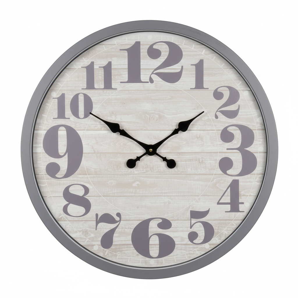 Kjo orë muri sjell një kombinim elegant të kornizës gri me sfond që imiton teksturën e drurit, duke u përshtatur lehtësisht me çdo dekor. Shifrat e mëdha dekorative arabe e bëjnë leximin e orës të thjeshtë edhe nga larg, ndërsa akrepat klasikë shtojnë hijeshi në çdo mur. Funksionimi analog me bateri e bën praktike për t’u vendosur kudo në shtëpi apo zyrë, pa pasur nevojë për prize.