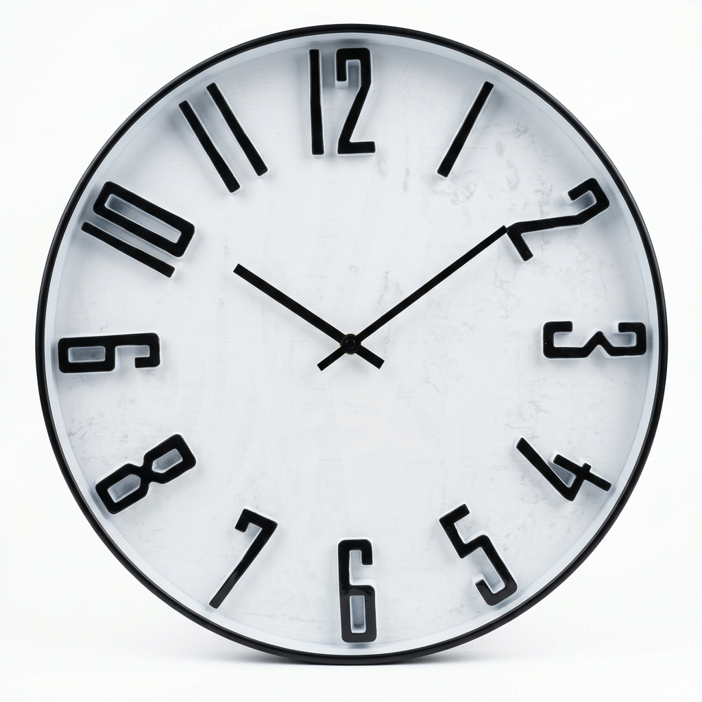 Ora rrethore analoge kombinon një fushë të bardhë/gri minimaliste me numra arabë 3D të zinj, duke ofruar lexueshmëri të lartë në çdo kënd. Korniza kontrastuese me efekt gold sjell një prekje luksoze që përshtatet lehtësisht si në ambiente moderne ashtu edhe klasike. Akrepat e hollë të zinj të orës, minutës dhe sekondës krijojnë një pamje të pastër dhe të rafinuar në murin tuaj.