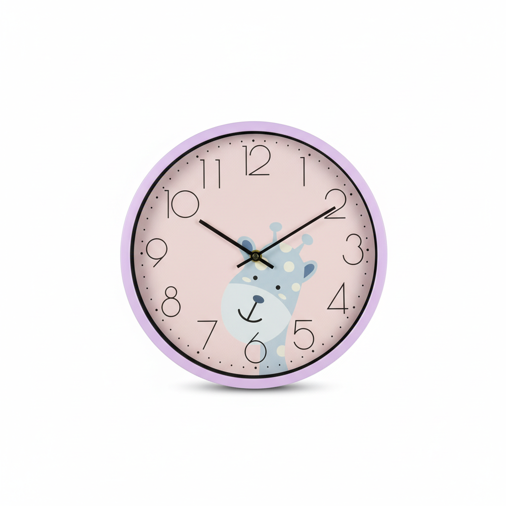 Kjo orë muri rrethore me kornizë rozë dhe ilustrim të një ariushi simpatik sjell ngrohtësi dhe argëtim në çdo dhomë fëmijësh ose çerdhe. Dizajni i butë dhe miqësor me fëmijët e bën një aksesor dekorativ të këndshëm, i cili i ndihmon të vegjlit të mësojnë orën.