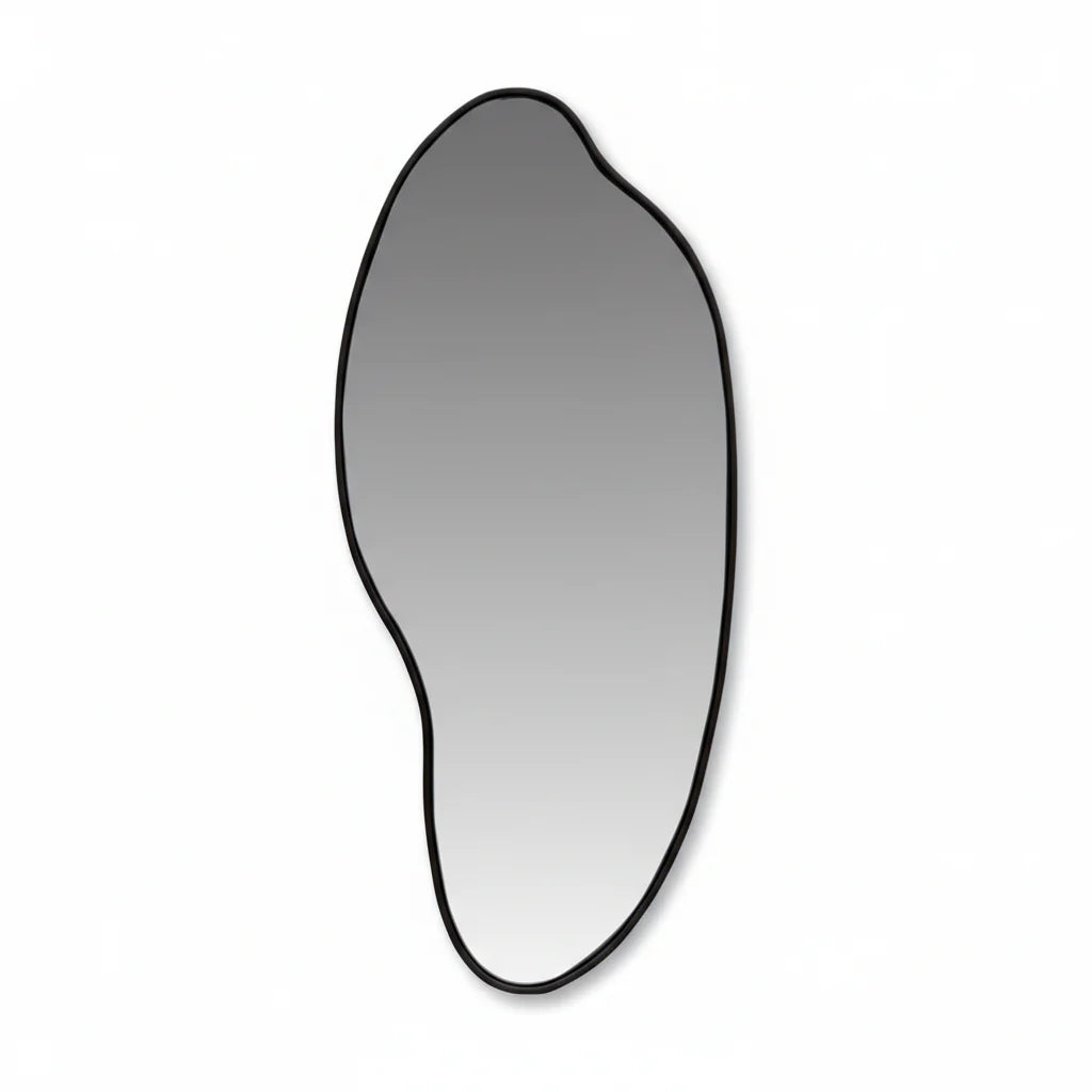 Sill një prekje moderne dhe artistike në ambientin tuaj me këtë pasqyrë me formë organike dhe kornizë elegante në ngjyrë të zezë. Dizajni i saj unik krijon një efekt vizual të veçantë, duke e bërë një element dekorativ që tërheq menjëherë vëmendjen.