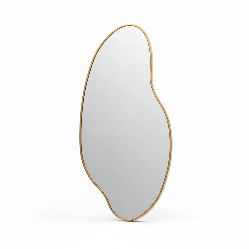 Kjo pasqyrë dekorative me formë ovale dhe linja organike sjell një stil unik dhe luksoz në çdo hapësirë. Korniza metalike me ngjyrë gold i jep një pamje elegante dhe bashkëkohore, duke e bërë ideale për sallon, dhomë gjumi, korridor apo edhe ambiente komerciale.