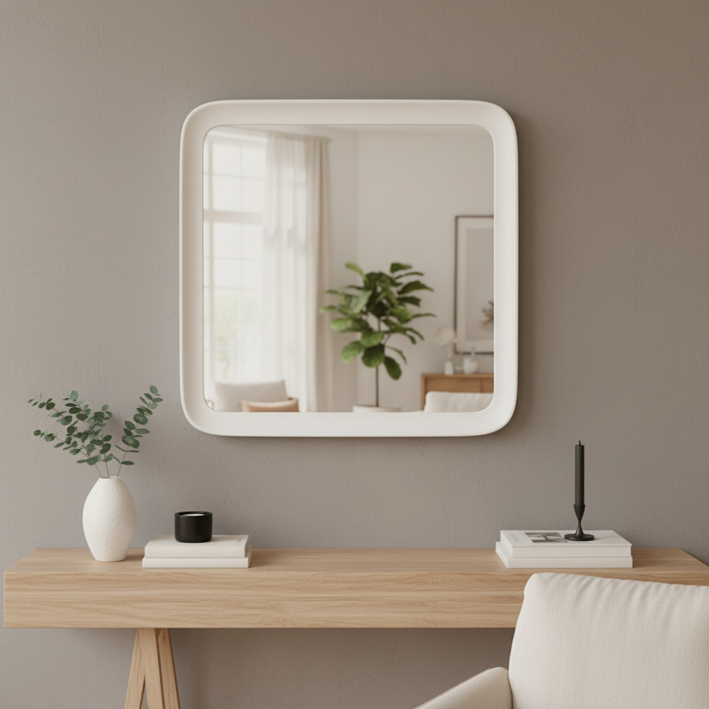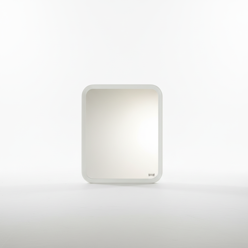 Pasqyra drejtkëndore me kornizë të bardhë sjell stil të pastër dhe funksionalitet praktik për çdo tualet ose banjo. Kornizat me skaje të rrumbullakosura e bëjnë atë një zgjedhje elegante për hapësirat moderne.