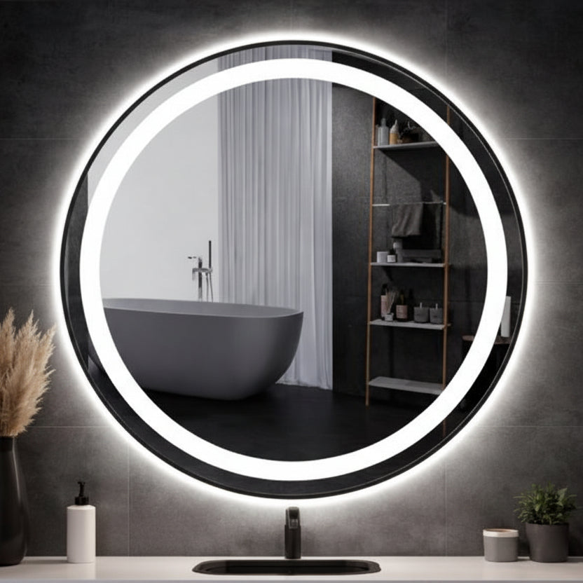 Kjo pasqyrë LED rrethore me dizajn modern është zgjedhja perfekte për një ambient banjoje elegant dhe bashkëkohor. Forma e saj rrethore me ndriçim të integruar krijon një efekt të sofistikuar “halo”, duke shtuar thellësi dhe ndriçim të njëtrajtshëm në hapësirë.