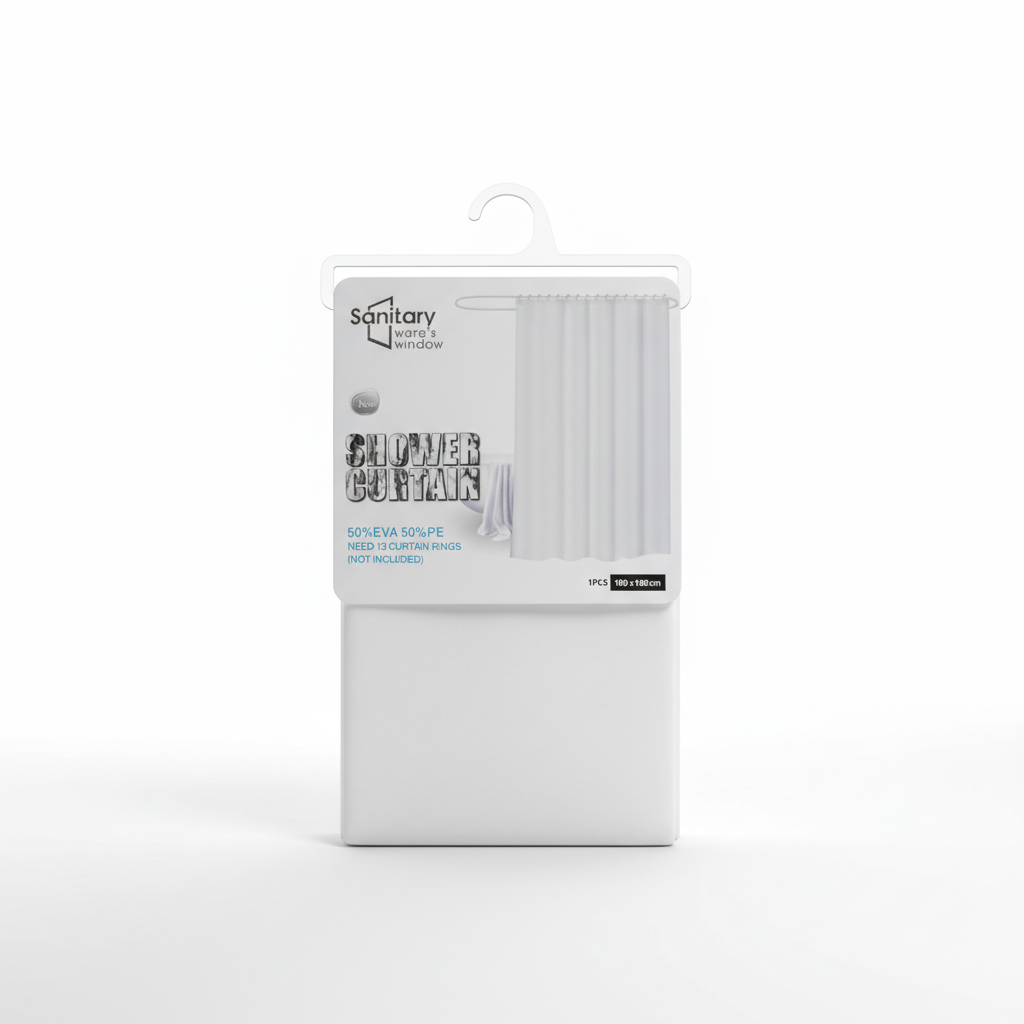 Kjo perde dushi me dizajn të thjeshtë dhe ngjyrë tërësisht të bardhë ofron mbulim të plotë për kabinën ose vaskën, duke mbajtur ujin brenda zonës së dushit. Materiali i saj i qëndrueshëm 50% EVA dhe 50% PE është rezistent ndaj ujit dhe i lehtë për t’u pastruar, i përshtatshëm për përdorim të përditshëm në çdo banjo.