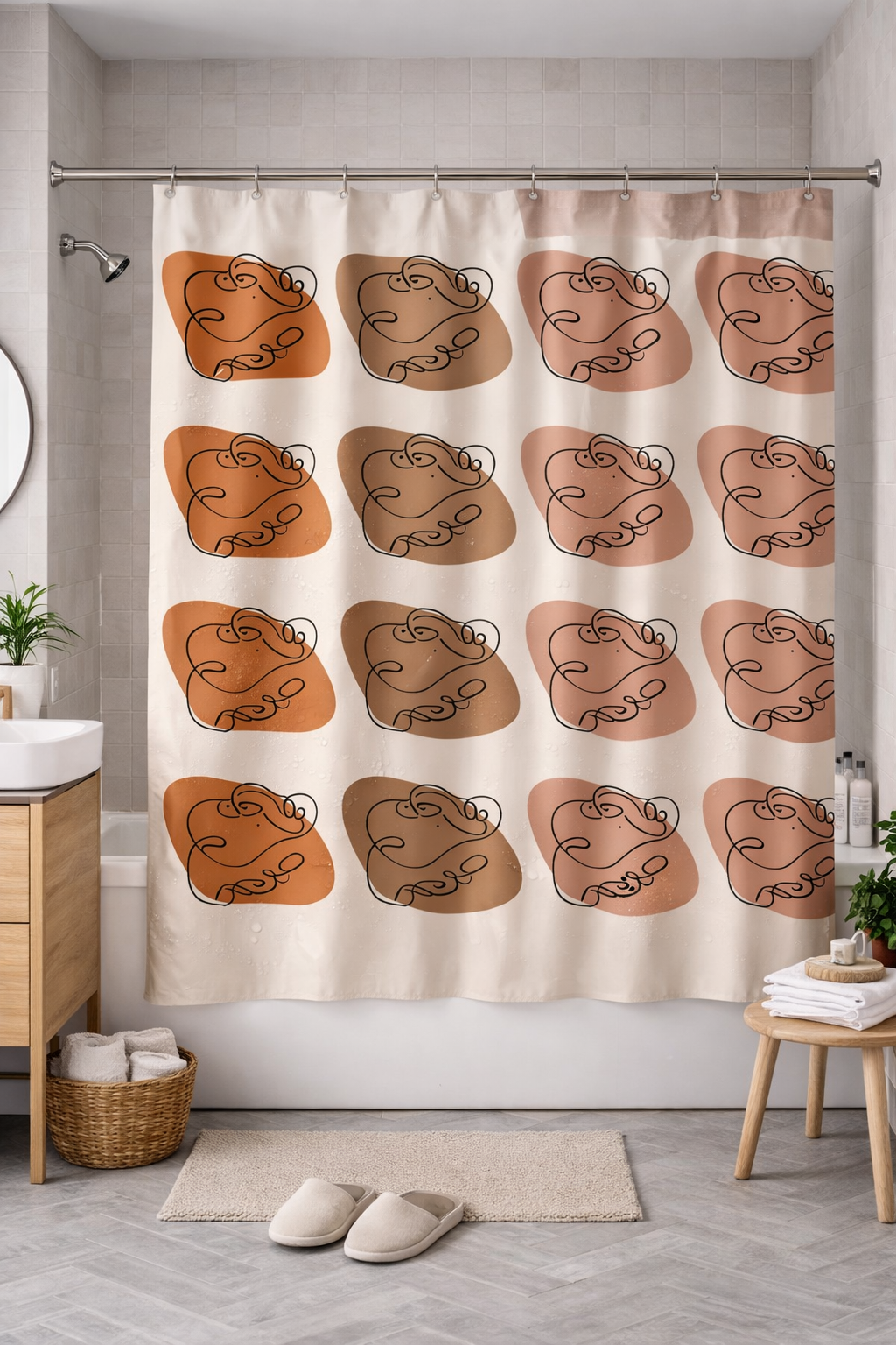 Rifreskoni ambientin e banjos me këtë perde dushi me dizajn modern abstract, e cila kombinon linja artistike me ngjyra të ngrohta nude dhe kafe. Një zgjedhje ideale për banjo bashkëkohore që kërkojnë stil dhe funksionalitet në të njëjtën kohë.